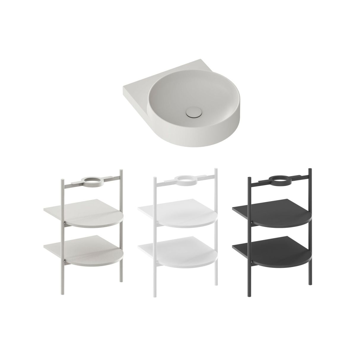- Zubehör zum Nachkauf: Konsole Yard 40, Konsole für Waschbecken CS Yard 40, fester Waschbeckenstopfen, offener Waschbeckenstopfen Flat fest Smoke Grey, Waschbecken-Siphon, Unterputz-Waschbeckenarmatur