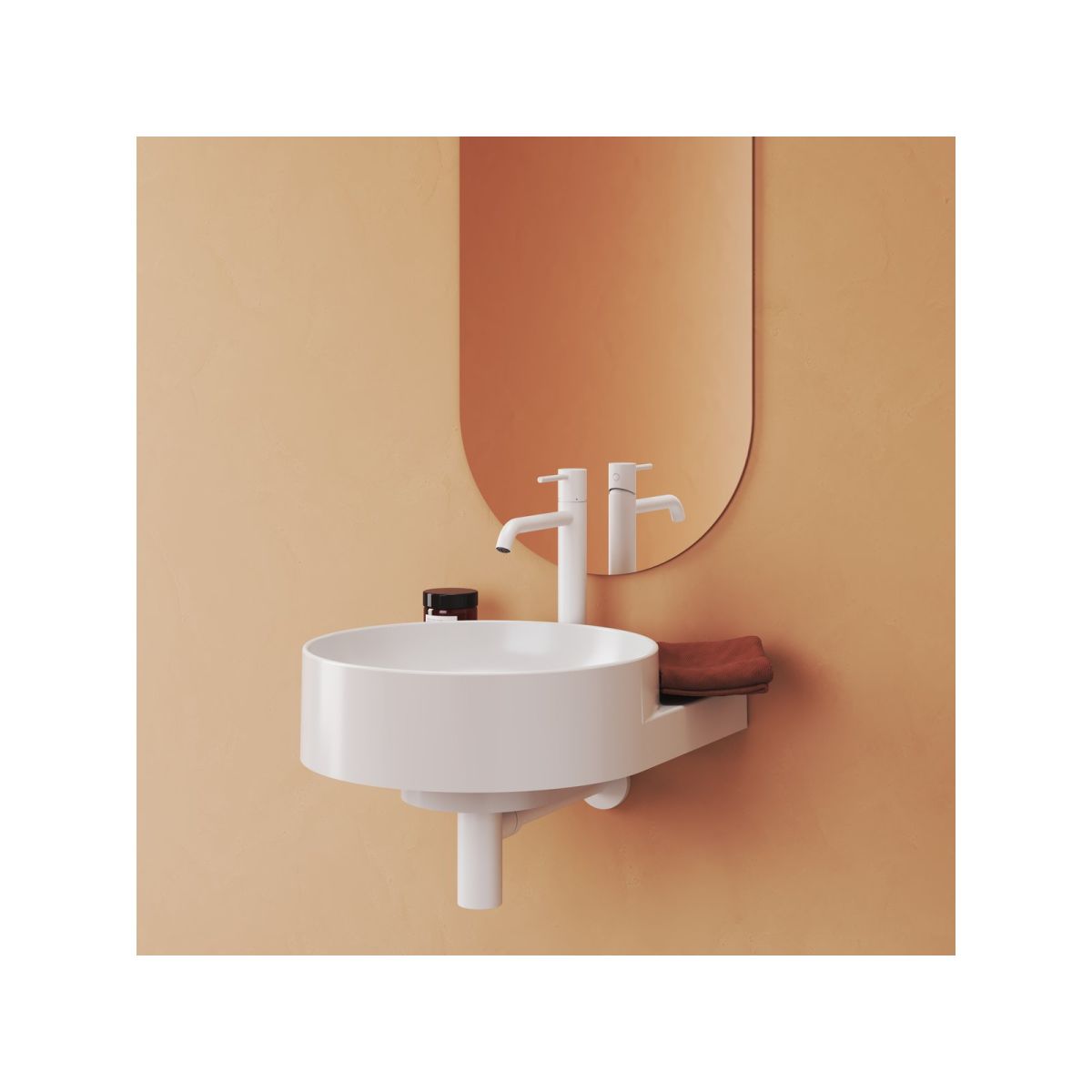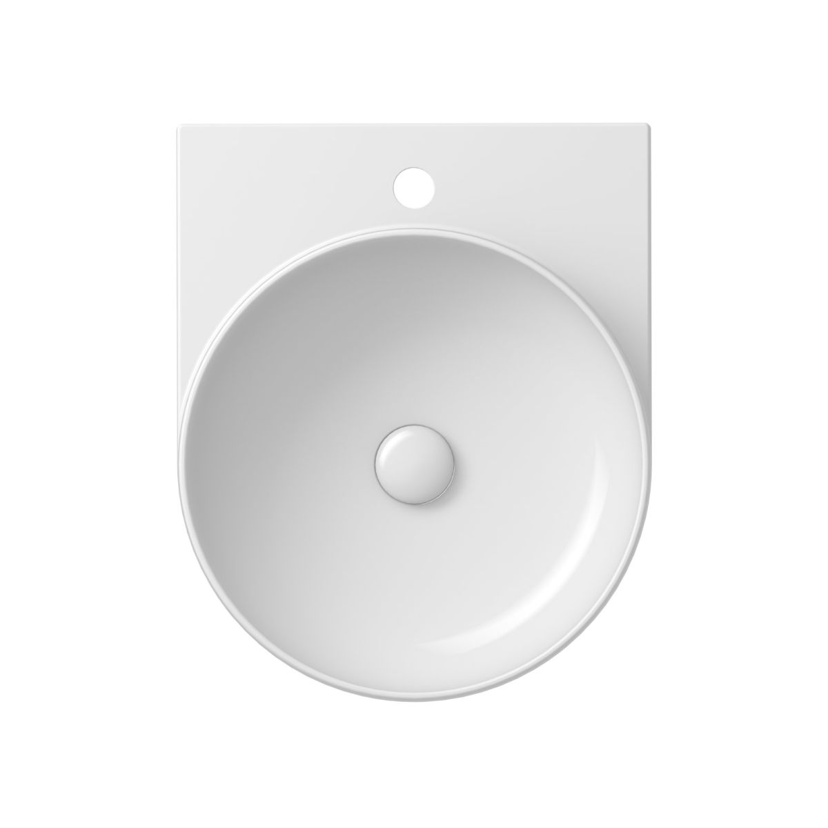 Das dünnwandige Keramikwaschbecken Yard ist für die Montage auf der Yard-Konsole oder auf einer Arbeitsplatte ohne Überlauf vorgesehen. Farbe: Weiß. Mit Öffnung für Wasserhahn.