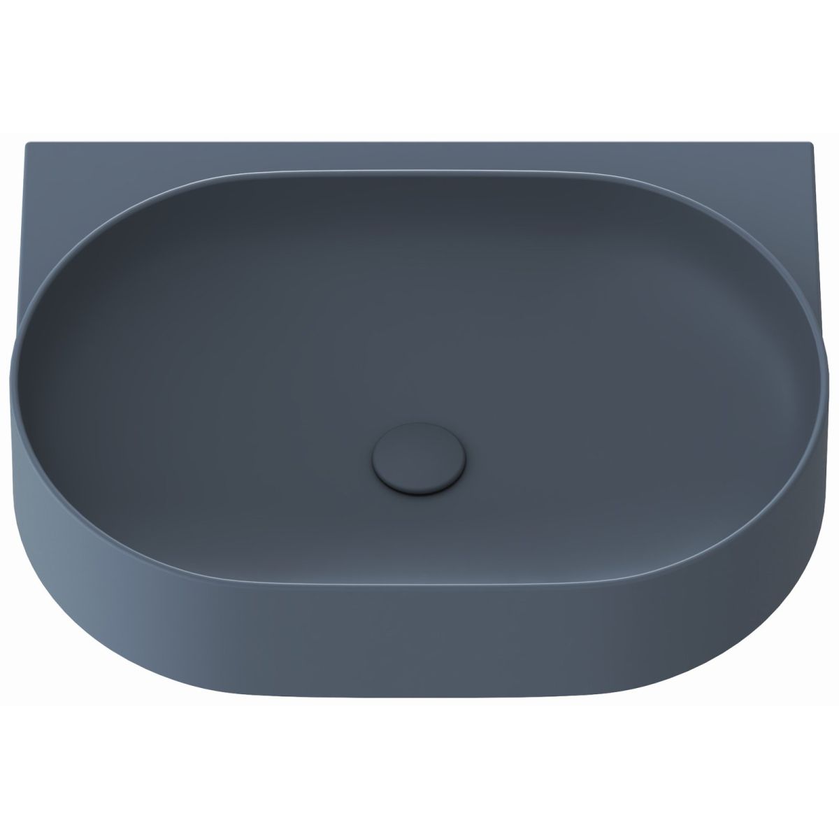 Das dünnwandige Keramikwaschbecken Yard ist für die Montage auf der Yard-Konsole oder auf einer Arbeitsplatte ohne Überlauf vorgesehen. Farbe Deepsea Blue. Mit Loch für Wasserhahn.