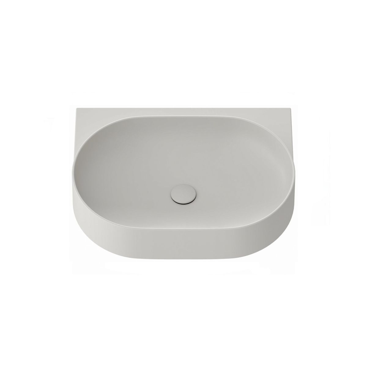 Das dünnwandige Keramikwaschbecken Yard ist für die Montage auf einer Yard-Konsole oder einer Arbeitsplatte ohne Überlauf vorgesehen. Farbe: Smoke Grey. Mit Loch für Wasserhahn.