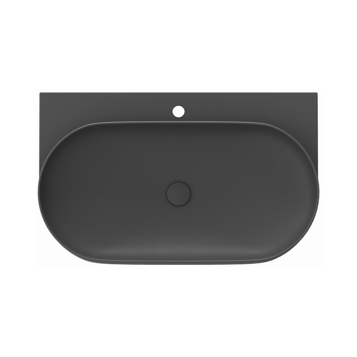 Das dünnwandige Keramikwaschbecken Yard ist für die Montage auf der Yard-Konsole oder auf einer Arbeitsplatte ohne Überlauf vorgesehen. Farbe: Anthrazit. Mit Loch für Wasserhahn.