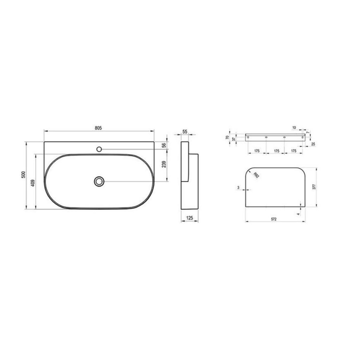 - Zubehör zum Nachkauf: Konsole Yard 80, Konsole für Waschbecken CS Yard 80, fester Waschbeckenstopfen, offener Waschbeckenstopfen Flat fest anthrazit, Waschbecken-Siphon, Waschbeckenarmatur