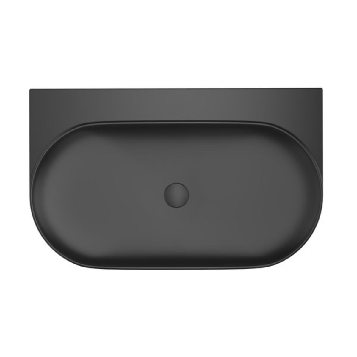 Das dünnwandige Keramikwaschbecken Yard ist für die Montage auf der Yard-Konsole oder auf einer Arbeitsplatte ohne Überlauf vorgesehen. Farbe: Mattschwarz. Ohne Loch – zum Anschluss an eine Unterputz-Waschtischarmatur.