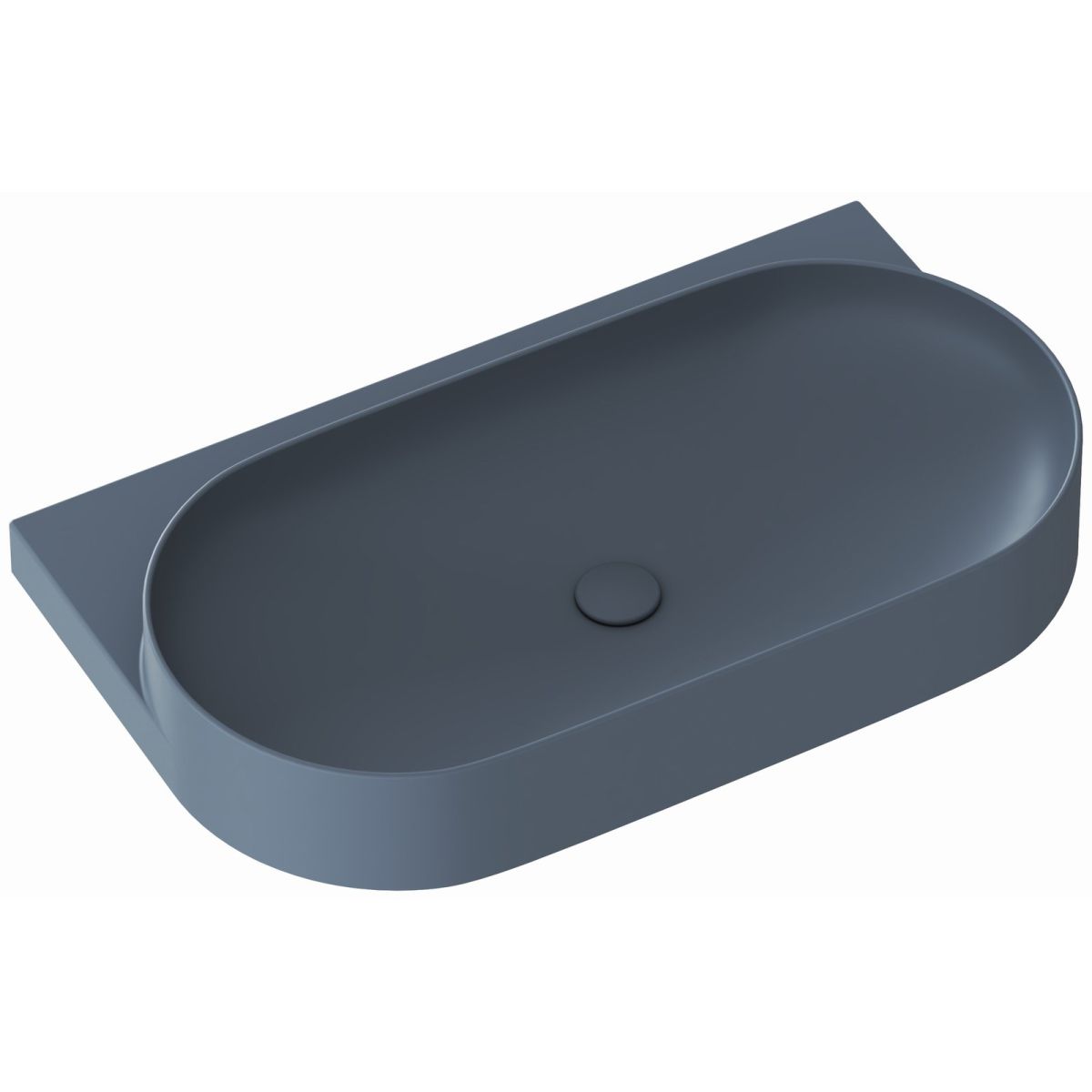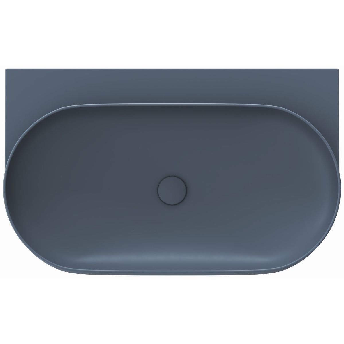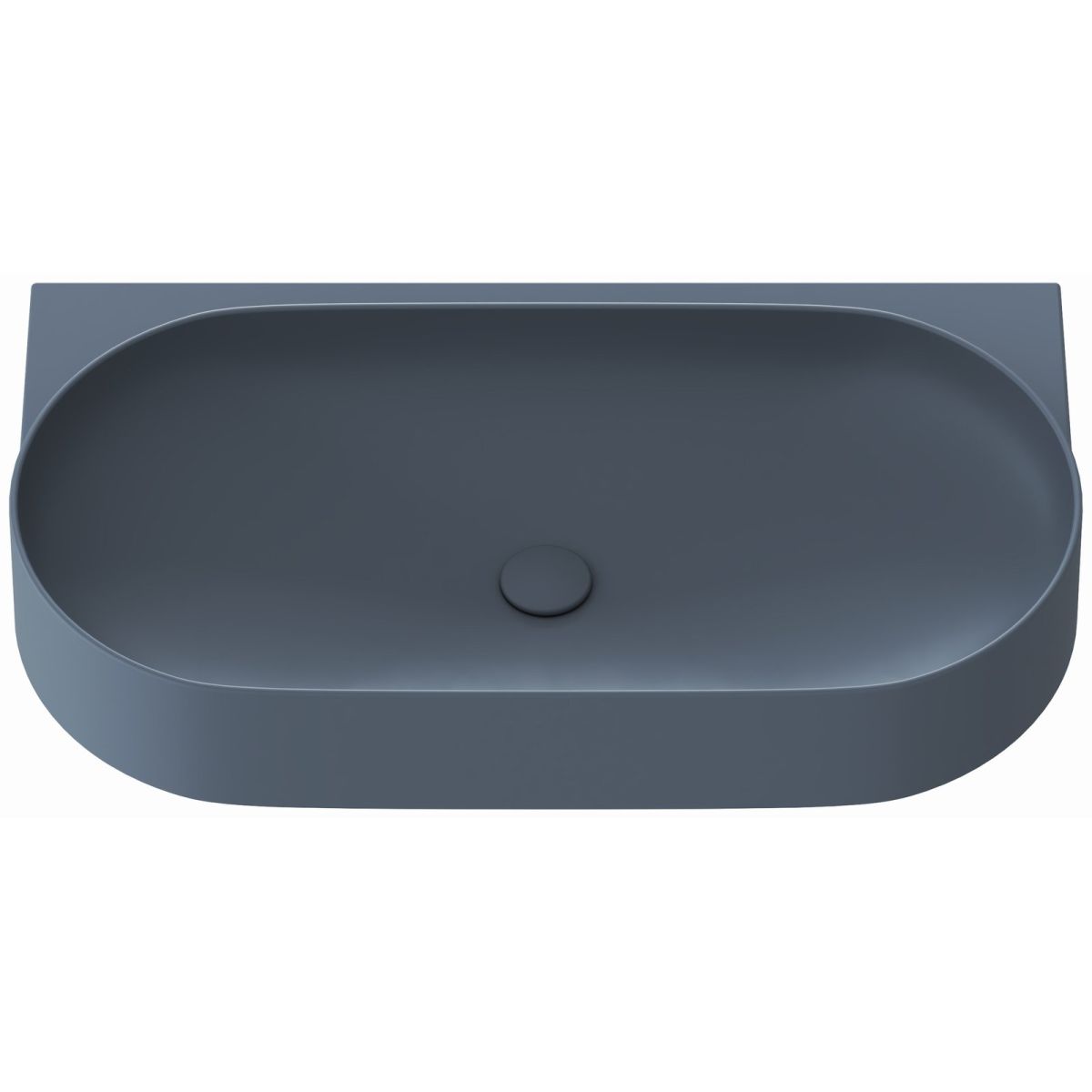 Das dünnwandige Keramikwaschbecken Yard ist für die Montage auf der Yard-Konsole oder auf einer Arbeitsplatte ohne Überlauf vorgesehen. Farbe Deepsea Blue. Ohne Loch – zum Anschluss an eine Unterputz-Waschtischarmatur.