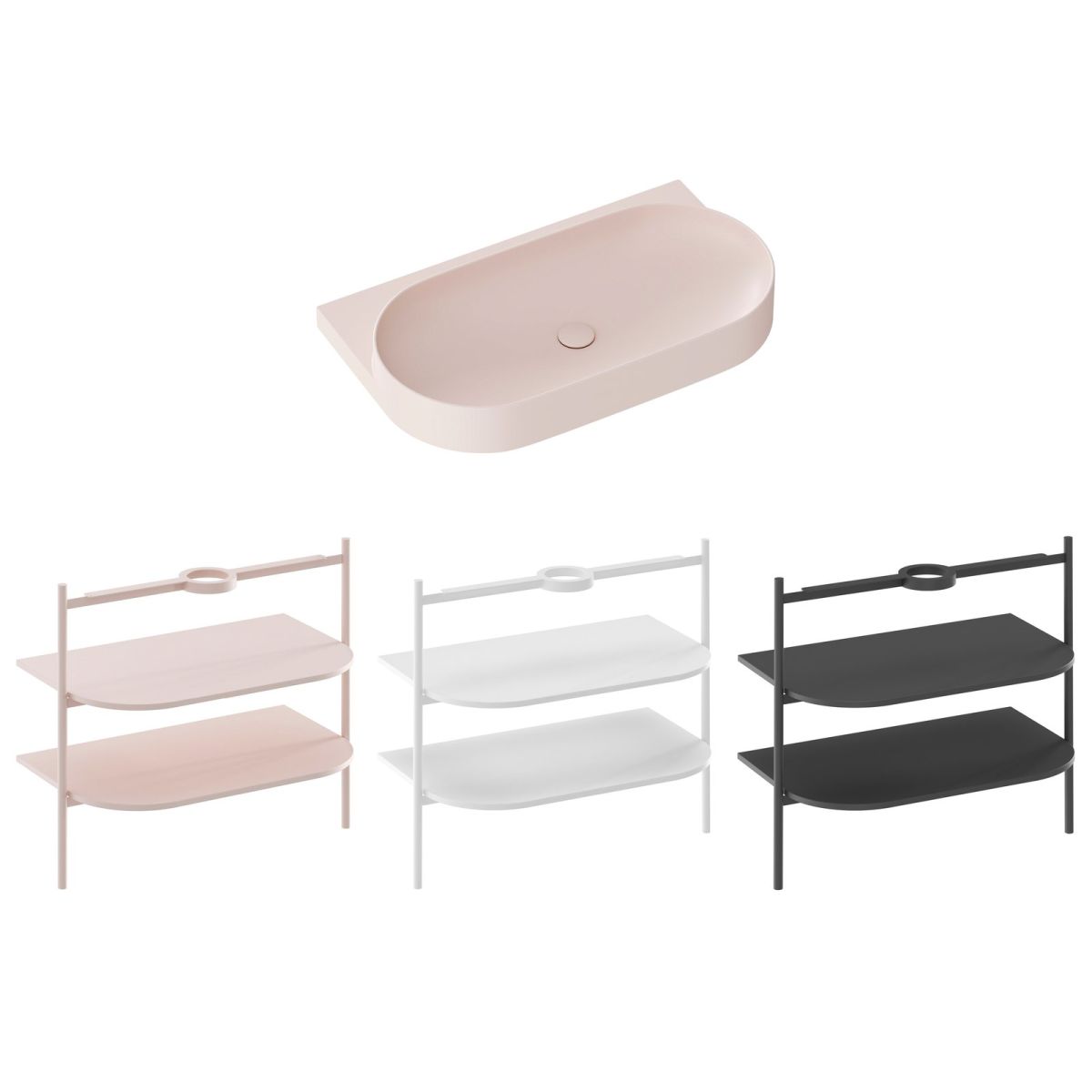 - Zubehör zum Nachkauf: Konsole Yard 80, Konsole für Waschbecken CS Yard 80, fester Waschbeckenstopfen, offener Waschbeckenstopfen Flat Alabaster Pink, Waschbecken-Siphon, Unterputz-Waschbeckenarmatur