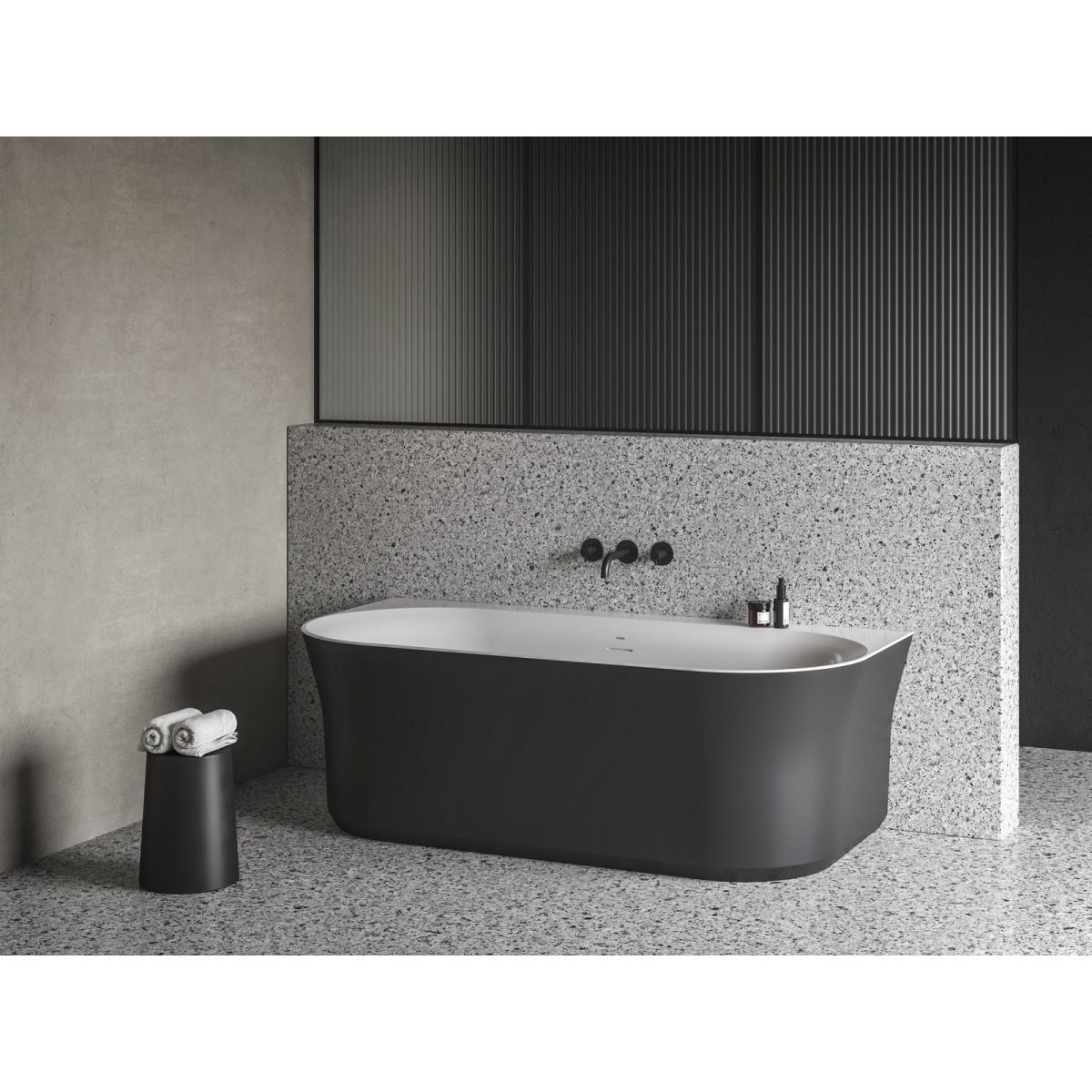Die romantische freistehende Badewanne Ypsilon Wall ist für die Wandmontage vorgesehen. Die dadurch entstandene zusätzliche Ablage eignet sich ideal für die Montage einer Badewannenarmatur und ermöglicht es Ihnen, alle notwendigen Dinge griffbereit zu haben. Die Form passt sich perfekt an unsere Körperanatomie an. Eine ideale Kombination aus Ergonomie und klassischer Eleganz. Kombination aus Weiß und Schwarz.
