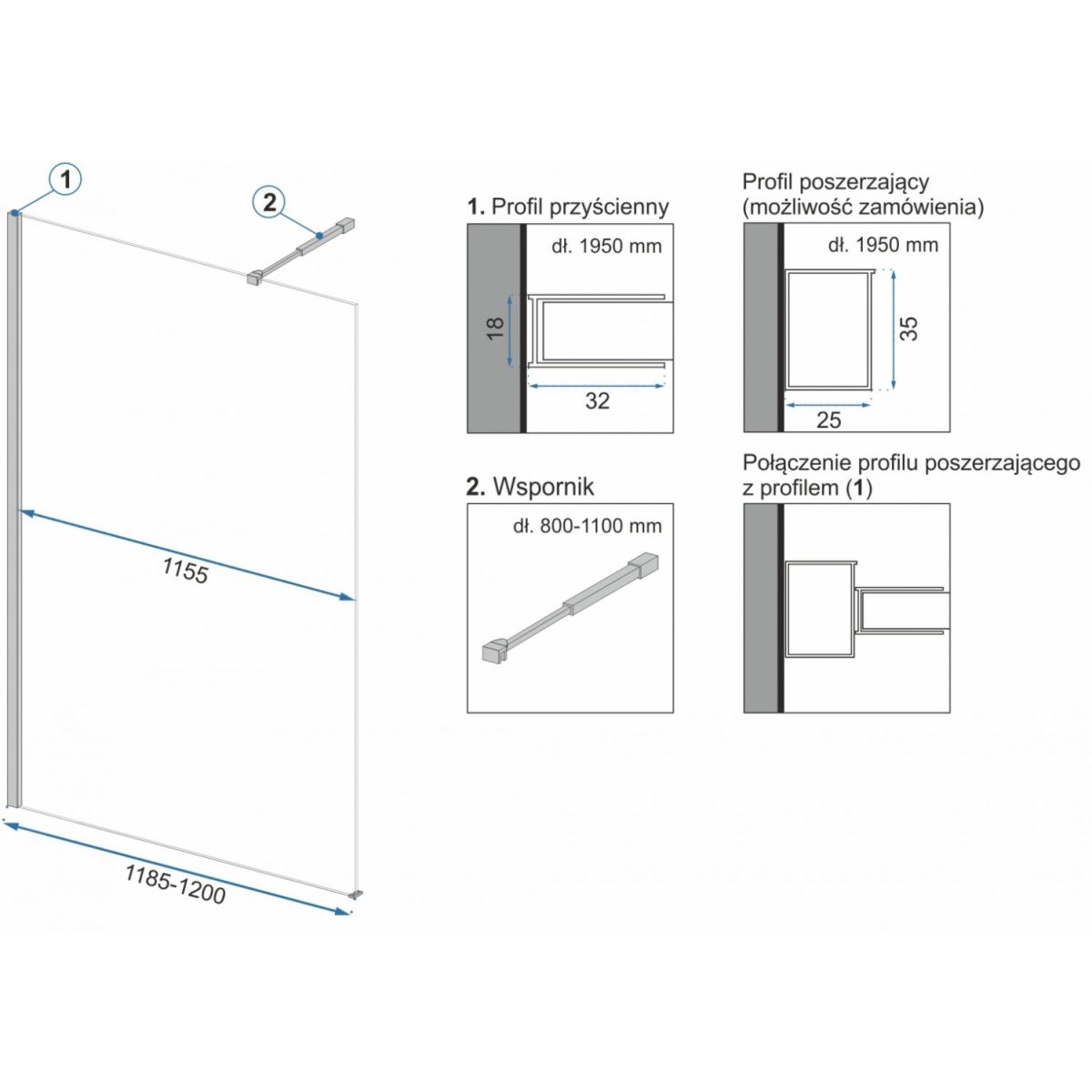 Rea Aero Duschwand 120 cm schwarz seidenmatt/durchsichtiges Glas REA-K6599