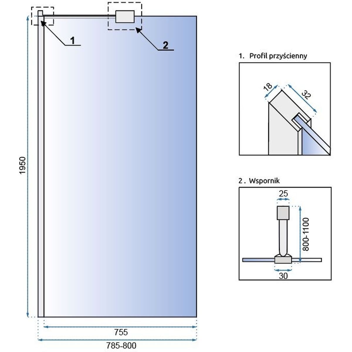 Rea Aero Duschwand 80 cm chrom Glanz/durchsichtiges Glas REA-K7552