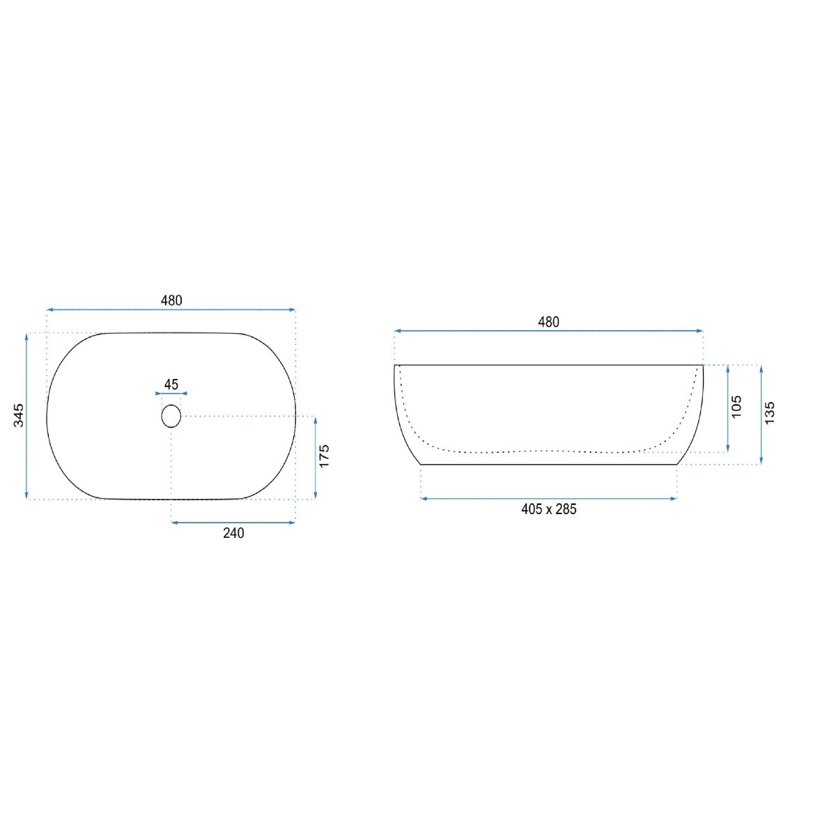 Rea Amelia Waschbecken 48x34.5 cm oval Aufsatzwaschbecken REA-U8001