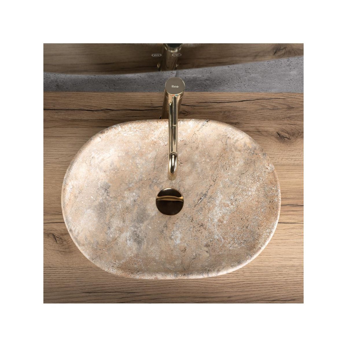 Rea Amelia Waschbecken 48x34.5 cm rechteckig Aufsatzwaschbecken grauer Stein-braun/beige REA-U3000