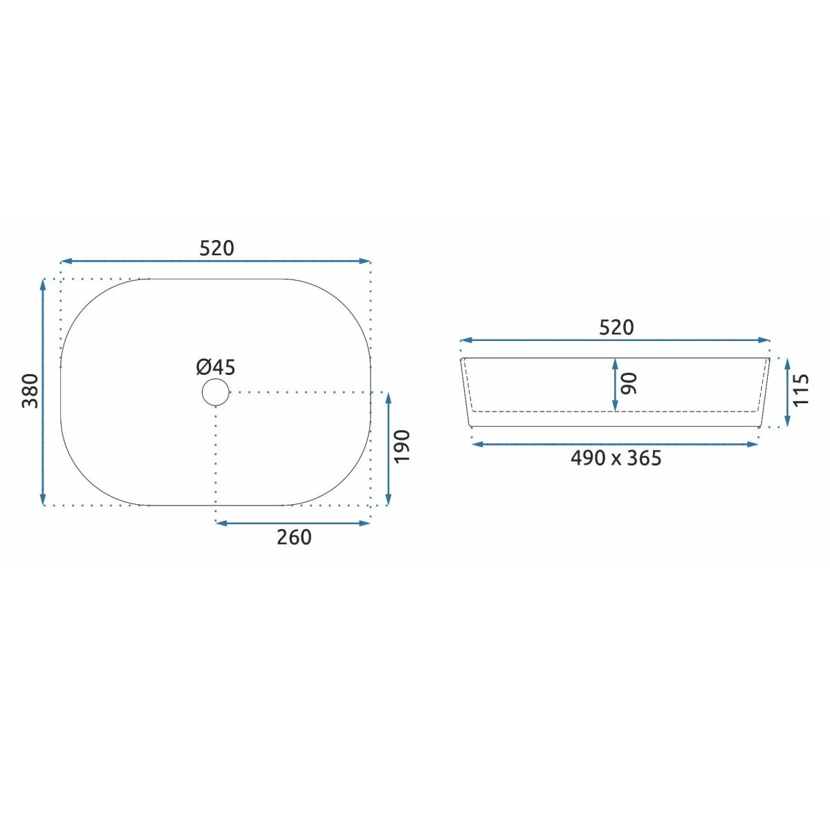 Rea Angie Waschbecken 52x38 cm rechteckig Aufsatzwaschbecken weiß REAU4121