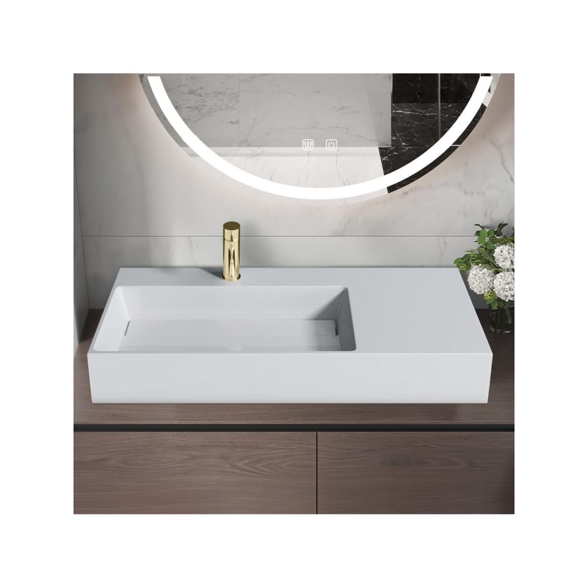 Wir präsentieren Ihnen ein wunderschönes, äußerst funktionales und modernes Waschbecken. Dieses Produkt passt perfekt in Ihren Badezimmerraum und bewahrt dabei das makellose Aussehen und die Ästhetik des Interieurs. Das Waschbecken ist aus hochwertigem Konglomerat in einer wunderschönen Farbe gefertigt. Das Waschbecken kann aufgehängt oder direkt auf der Arbeitsplatte montiert werden.