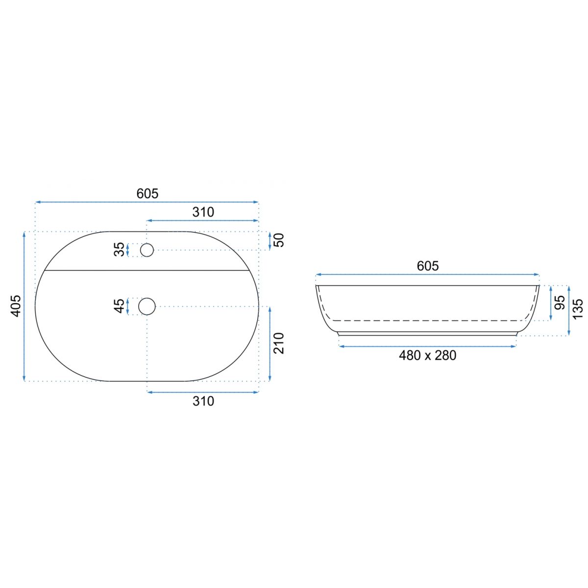 Rea Aura Waschbecken 60.5x40.5 cm oval Aufsatzwaschbecken weiß REA-U7900