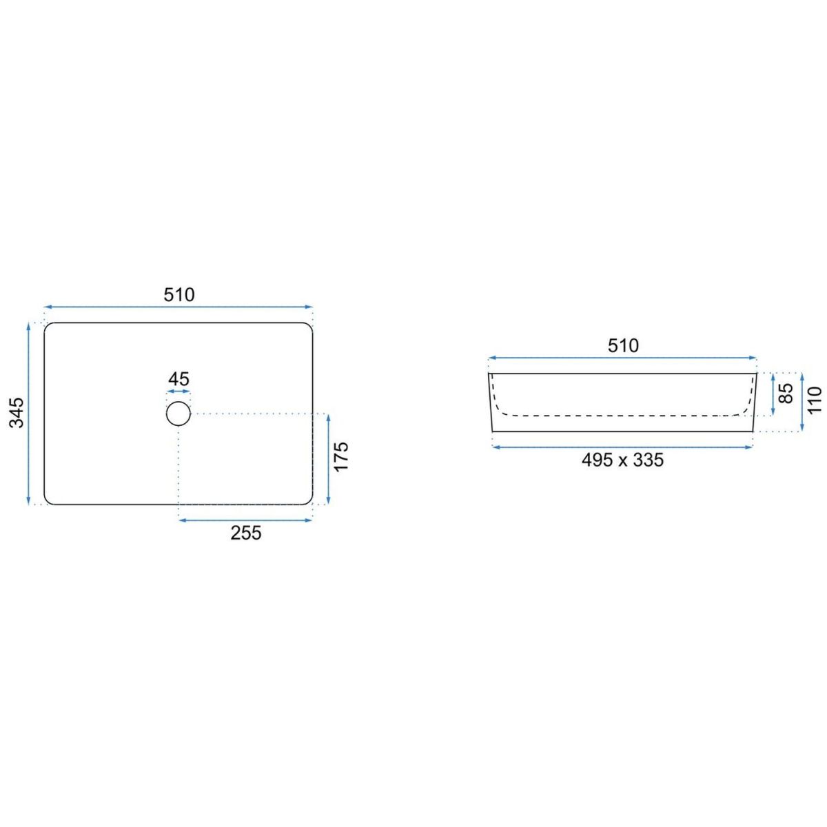 Rea Avia Waschbecken 51x34.5 cm rechteckig Aufsatzwaschbecken weiß REA-U0840