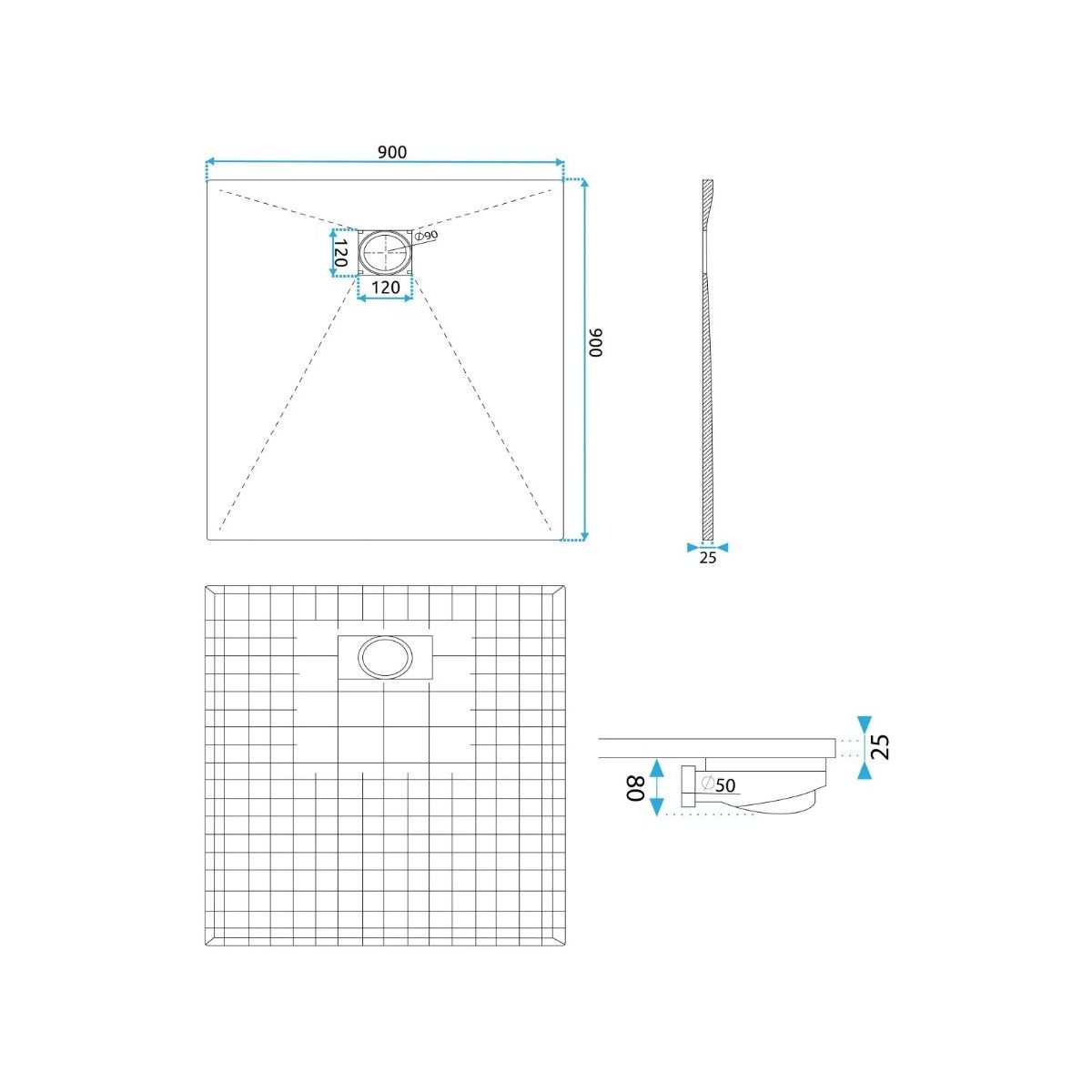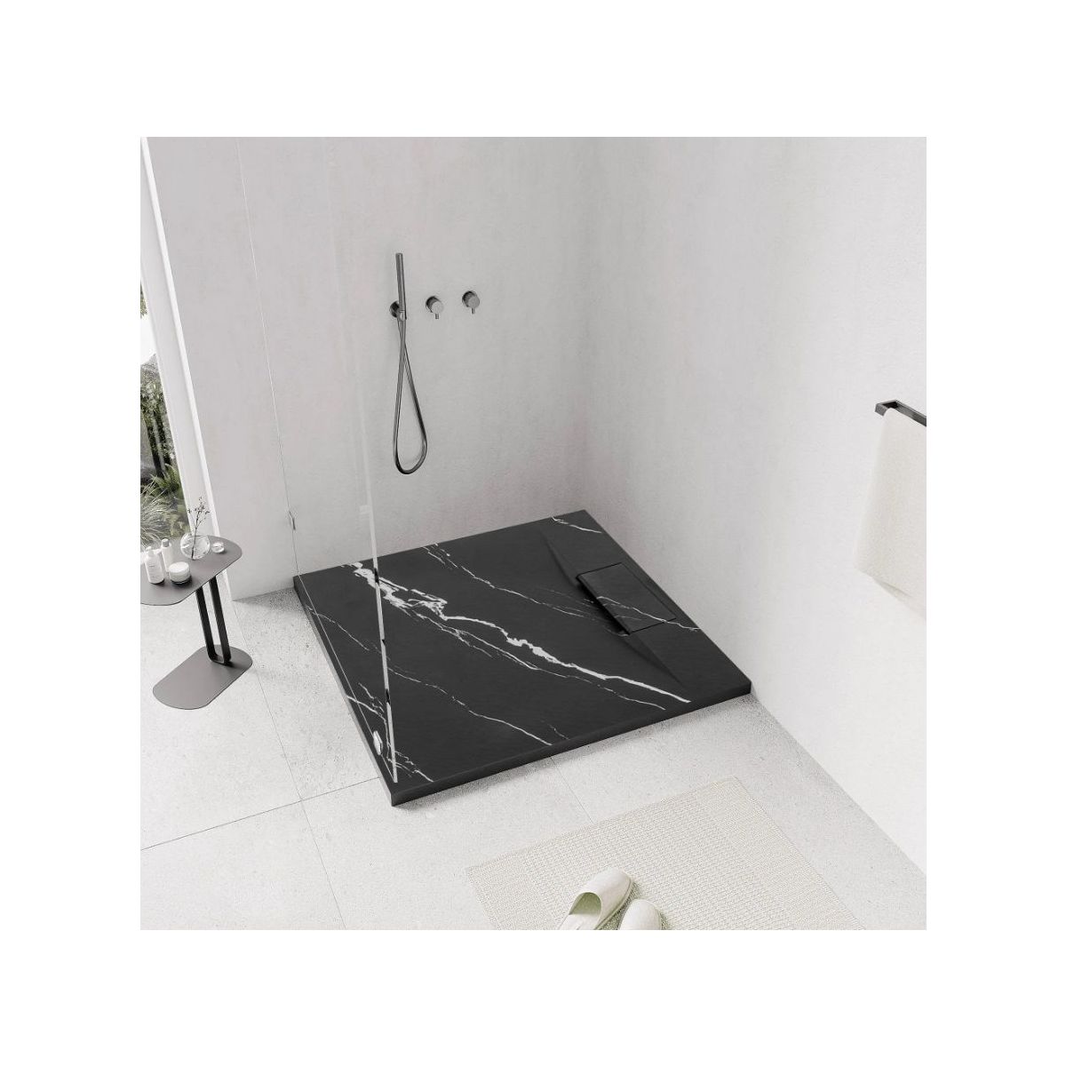 Rea Bazalt Carrara Black Quadratische Duschwanne 90x90 cm schwarz REA-K7003