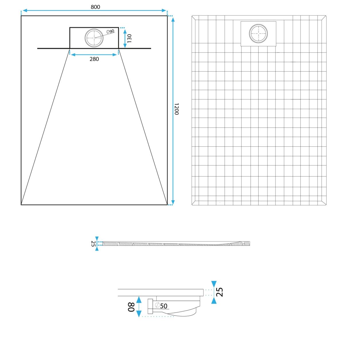 Rea Bazalt Rechteckige Duschwanne 120x80 cm schwarz REA-K3305