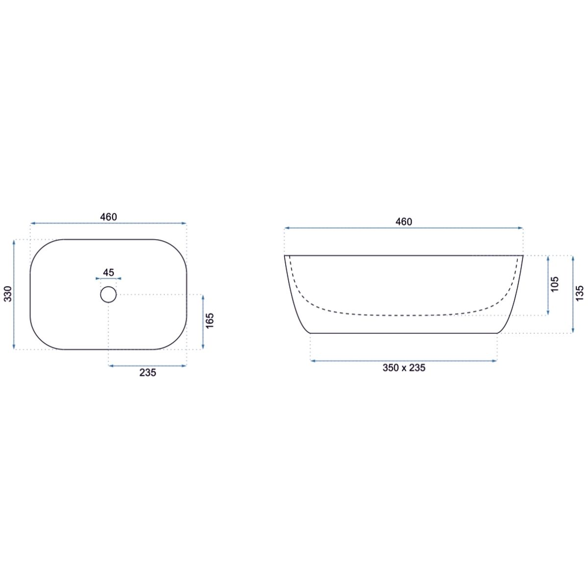 Rea Belinda Slim Waschbecken 46x33 cm rechteckig Aufsatzwaschbecken schwarz REA-U8470