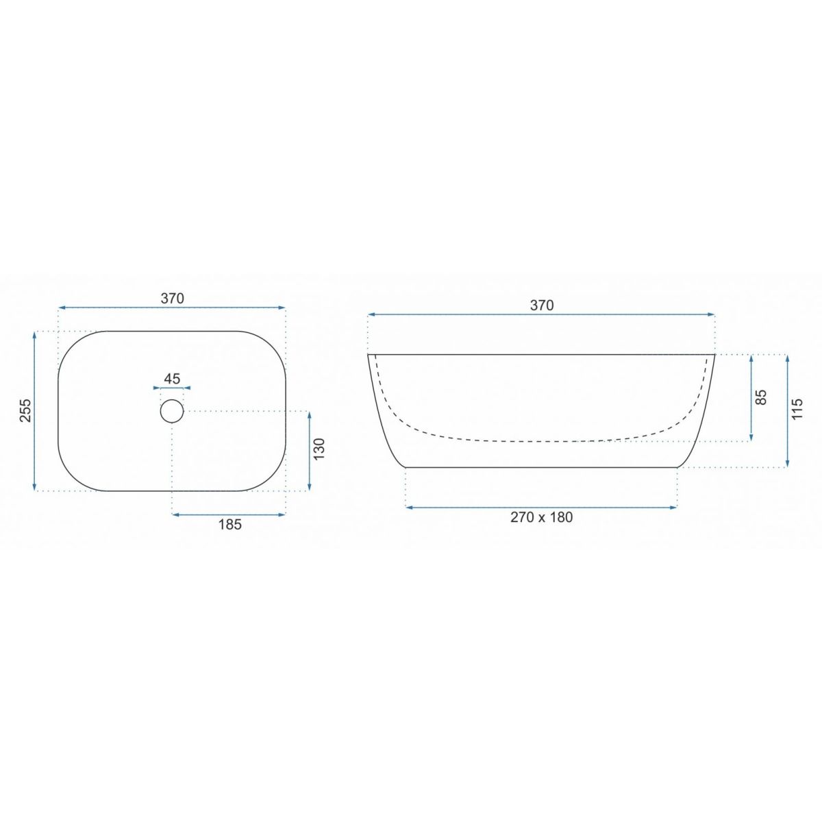Rea Belinda Waschbecken 37x25.5 cm rechteckig Aufsatzwaschbecken weiß REA-U5667