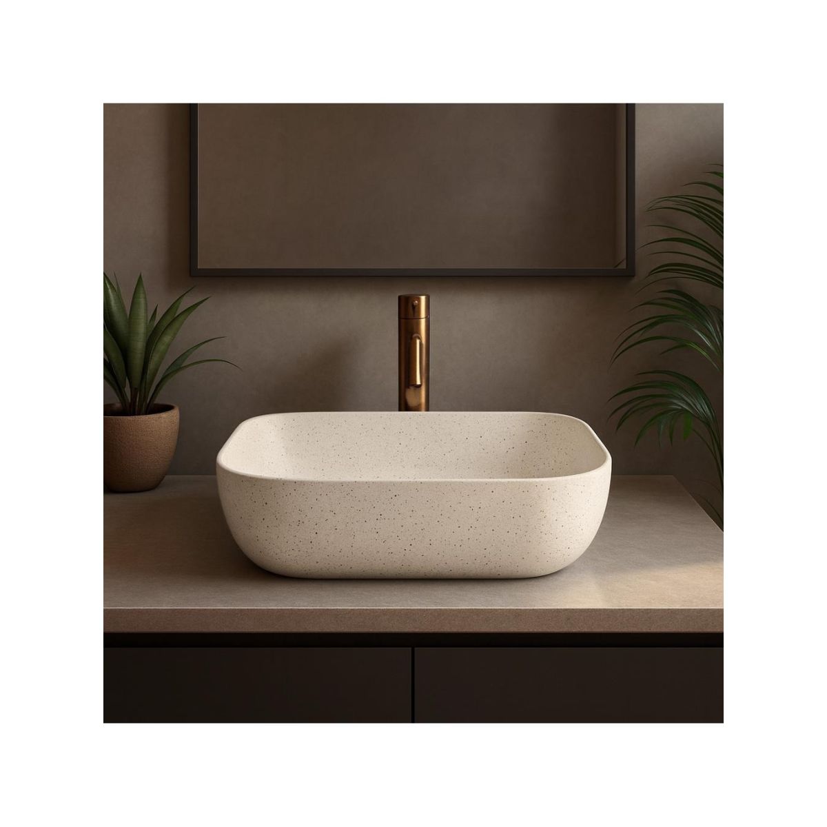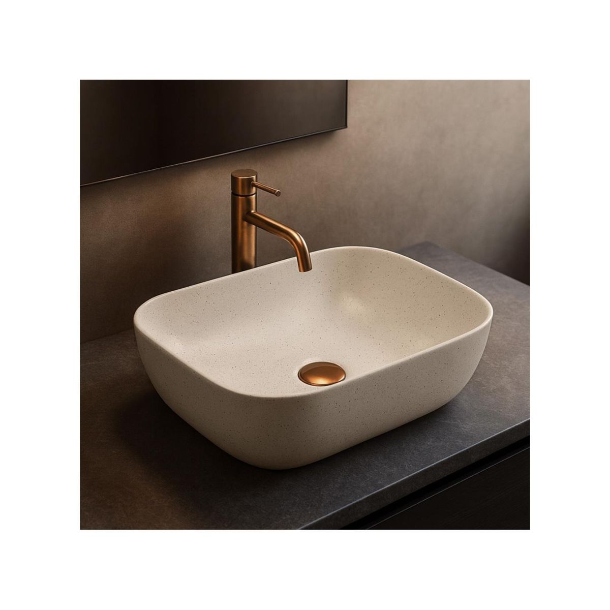 Rea Belinda Waschbecken 46.5x33 cm rechteckig Aufsatzwaschbecken braun/beige REA-U4000