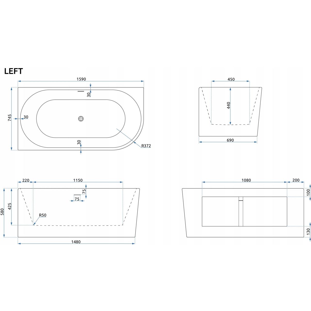 Rea Bellanto Eckbadewanne 159x74.5 cm linksseitig weiß REA-W0252