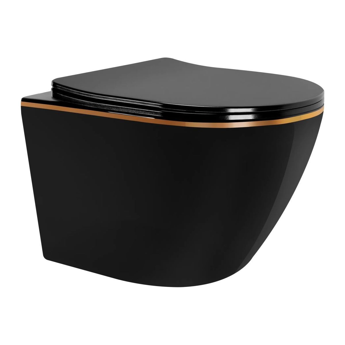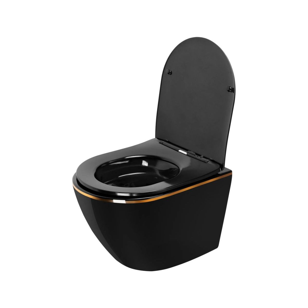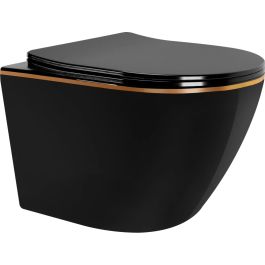 Rea Carlo Mini WC-Becken mit Absenkautomatik-Sitz hängend Spülrandlos schwarz-gold Glanz REA-C8800