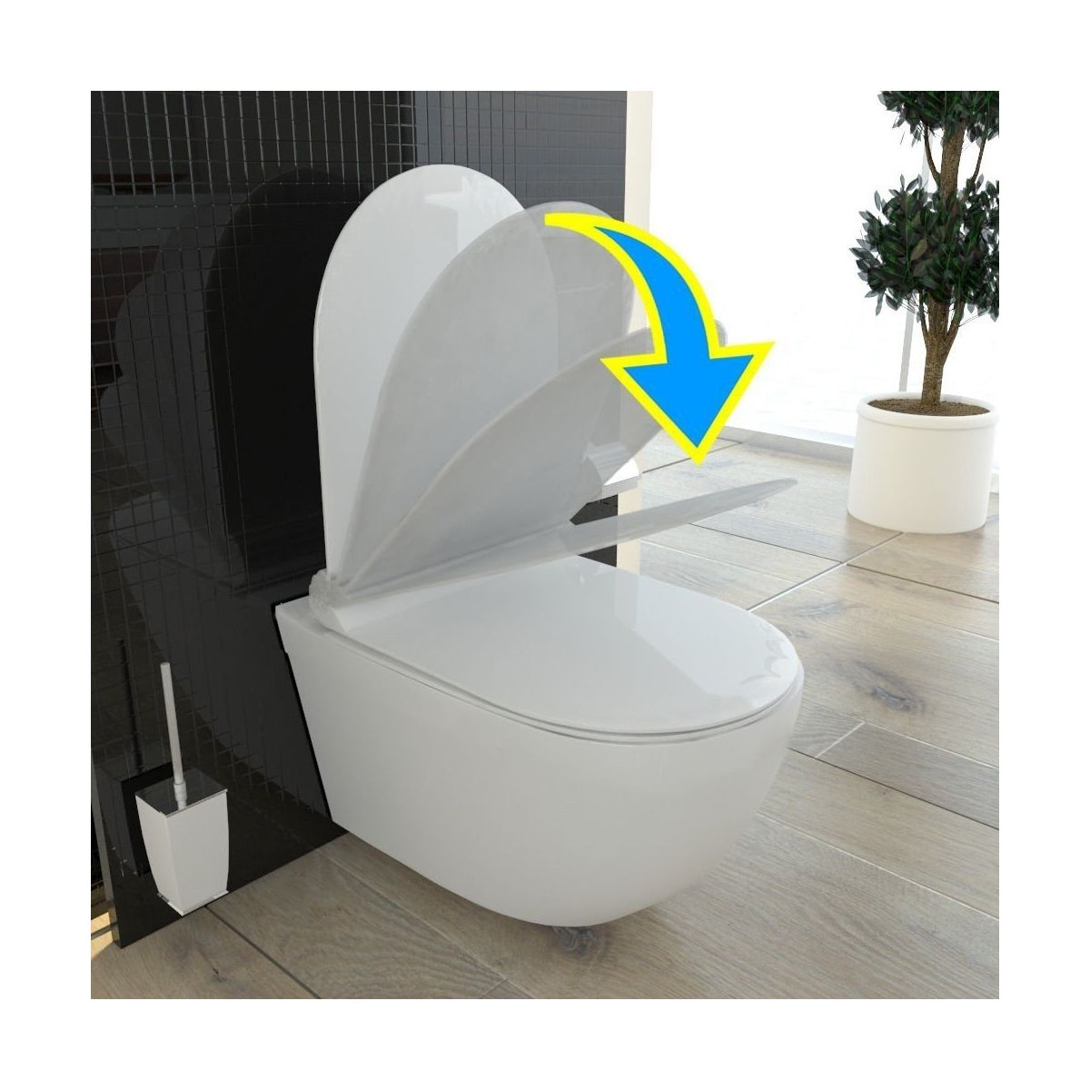 - Duroplast-Sitzplatte (hart), langsam schließend, abnehmbar, Slim (dünn)