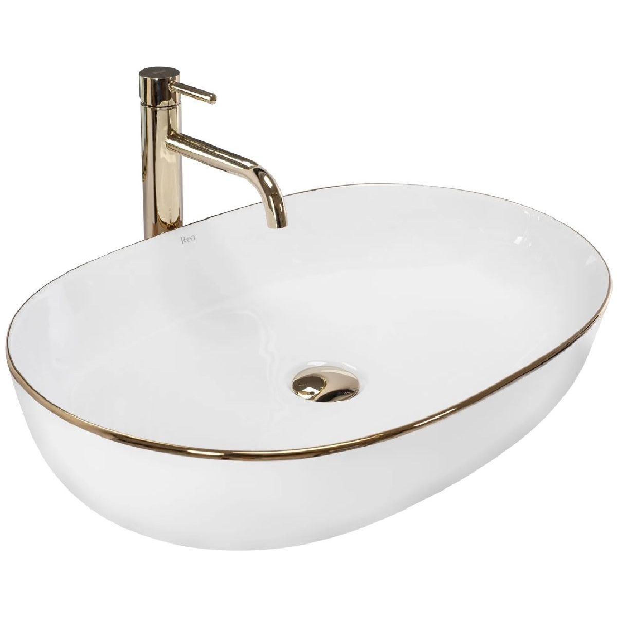 Rea Cleo Waschbecken 60.5x41 cm oval Aufsatzwaschbecken weiß-gold REA-U6211