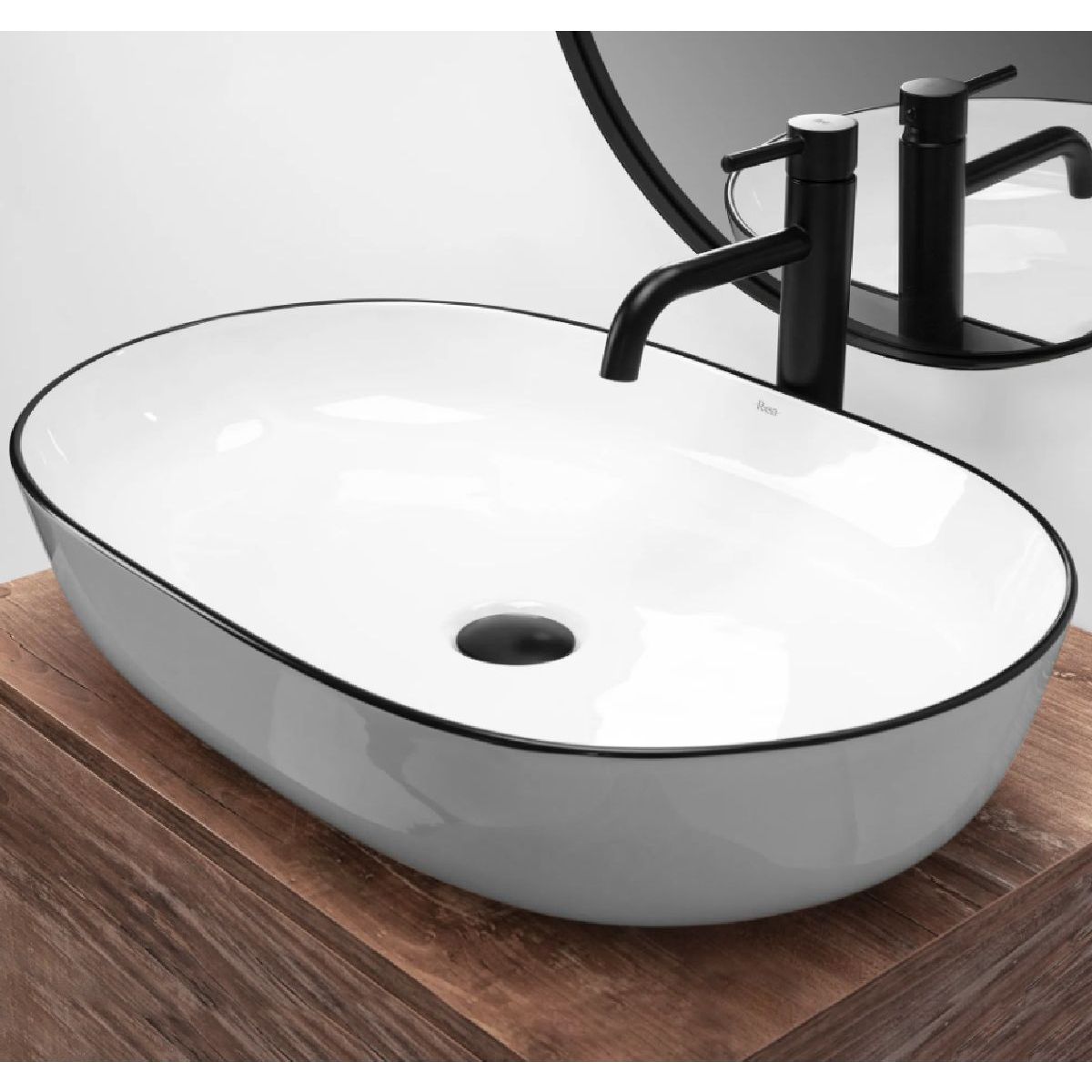Rea Cleo Waschbecken 60.5x41 cm oval Aufsatzwaschbecken weiß-schwarz REA-U6210