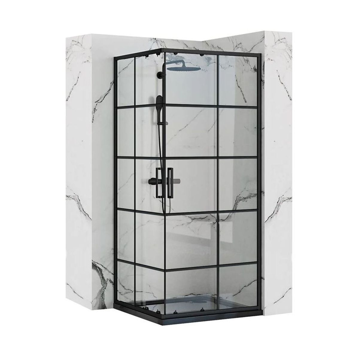 Rea Concept Dusche 80x80 cm quadratisch schwarz seidenmatt/durchsichtiges Glas REA-K5479