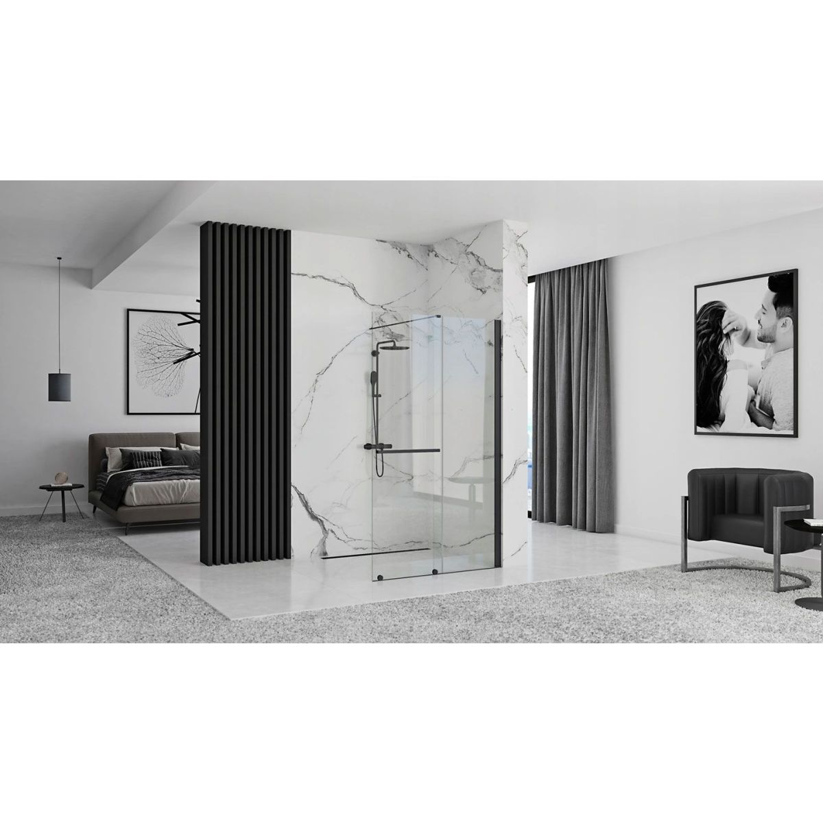 Rea Cortis Black Begehbare Duschwand 100 cm schwarz Matte/durchsichtiges Glas REA-K7740