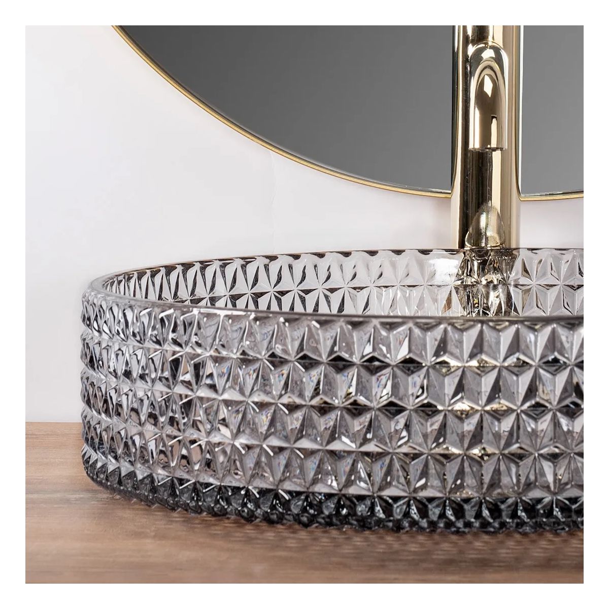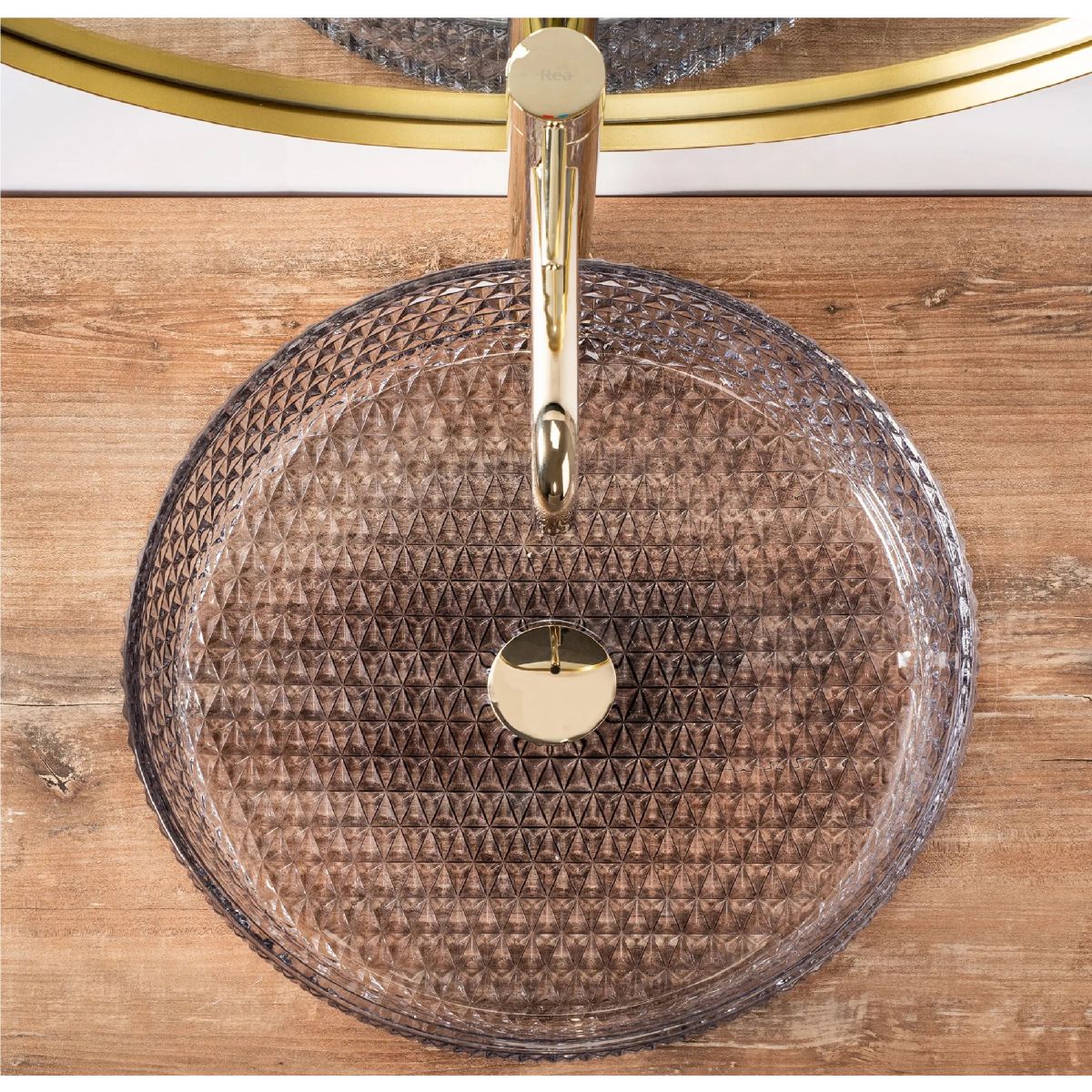 Rea Cristal Waschbecken 39x39 cm rund Aufsatzwaschbecken grauer Stein REA-U8880