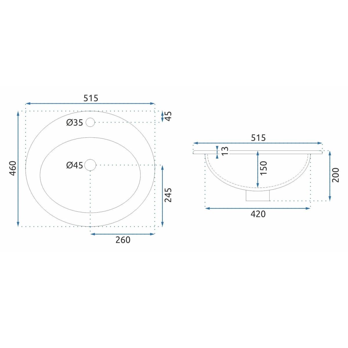 Rea Dalia Waschbecken 51.5x46 cm oval Einbauwaschbecken weiß REA-U4122