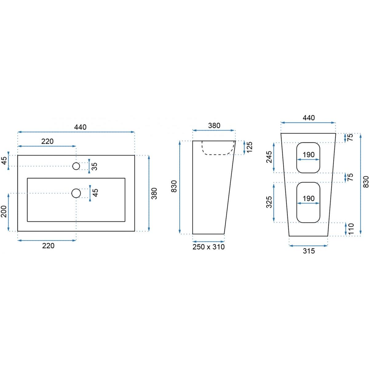 Rea Daria Waschbecken 44x38 cm rechteckig Freistehend weiß REA-U9900