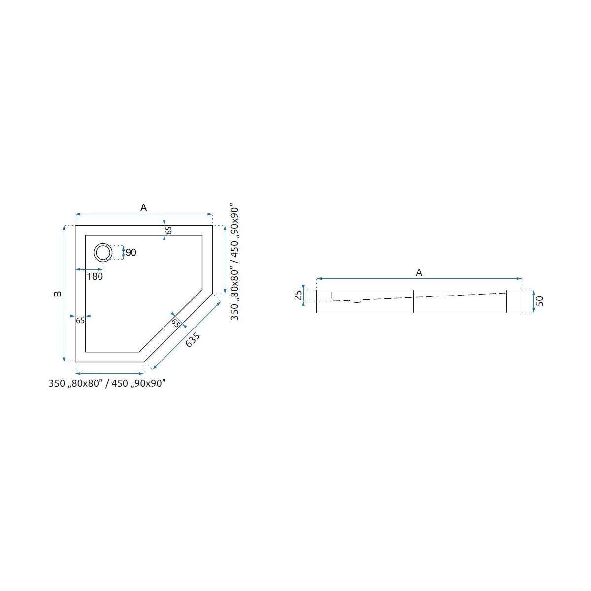 Rea Diamond Fünfeckige Duschwanne 90x90 cm schwarz REA-K8543