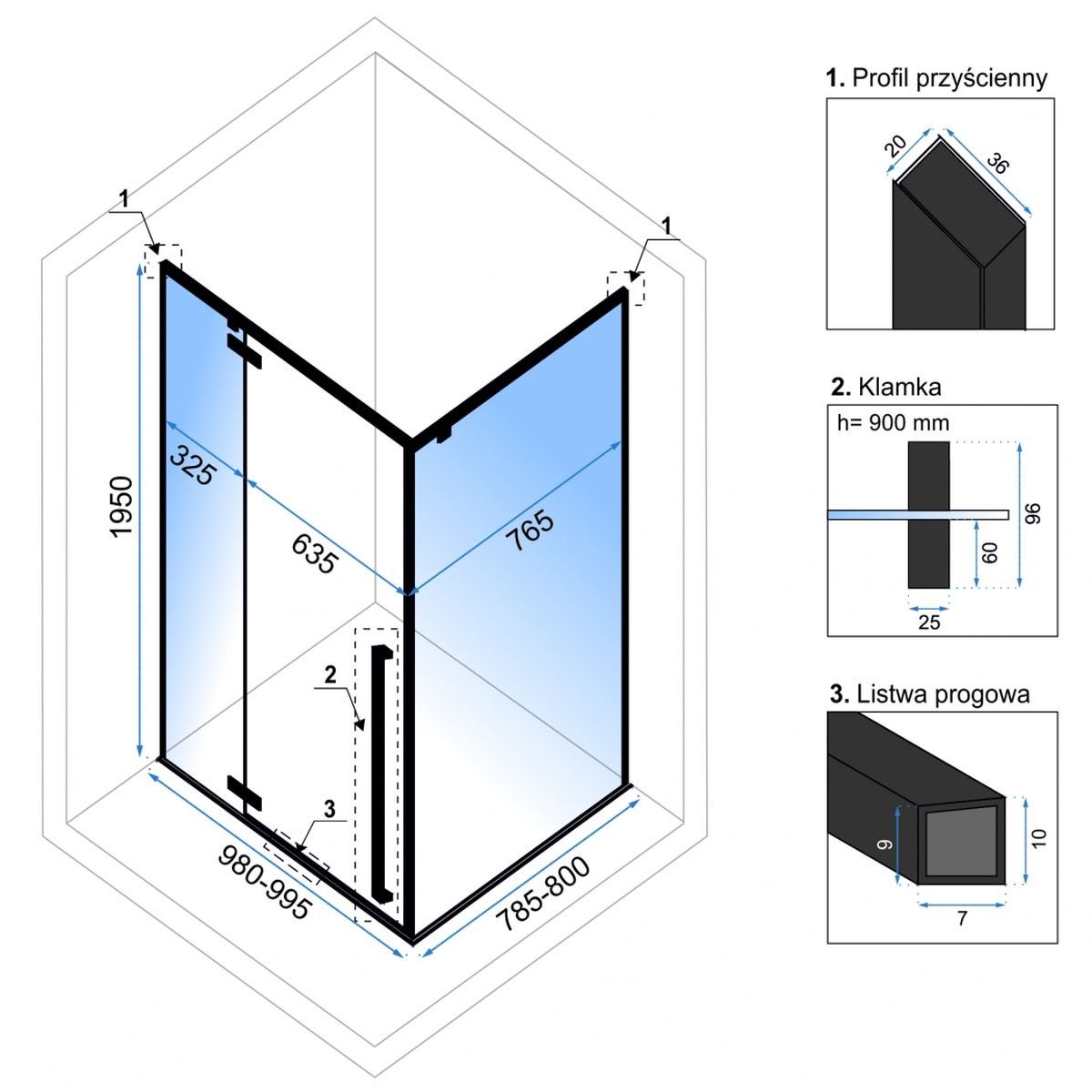 - Im Lieferumfang enthalten: schwarzer Griff, Stahlscharniere, Schwellenleiste, Dichtungen