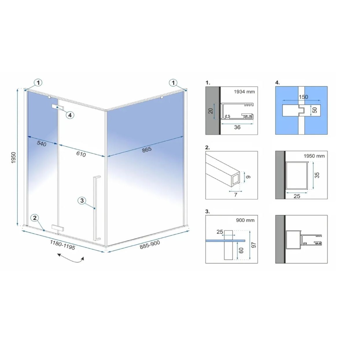 Rea Fargo Dusche 120x90 cm rechteckig gold Glanz/durchsichtiges Glas REA-K6614