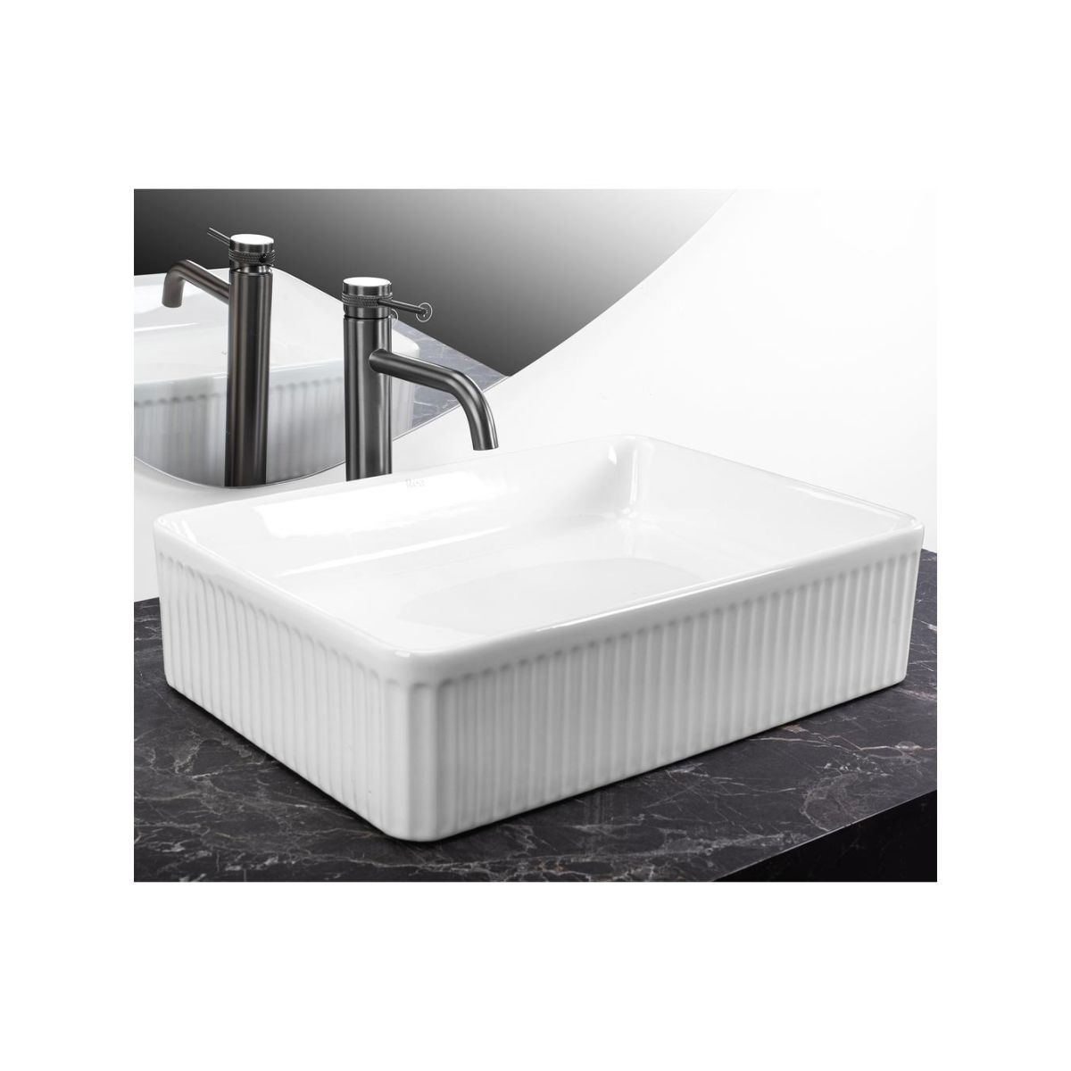Wir präsentieren Ihnen ein Aufsatzwaschbecken, das Ihrem Badezimmer ein modernes Aussehen und hohe Funktionalität verleiht. Das Waschbecken ist aus hochwertiger Sanitärkeramik gefertigt. Die Außenfläche ist geriffelt, was einen interessanten visuellen Effekt erzeugt und dem Badezimmer einen einzigartigen Charakter verleiht.