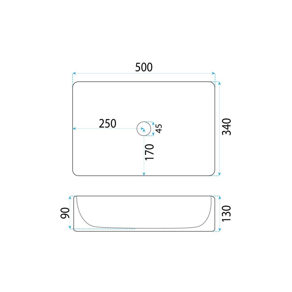 Rea Fiorella Waschbecken 50x34 cm rechteckig Aufsatzwaschbecken weiß REA-U6621