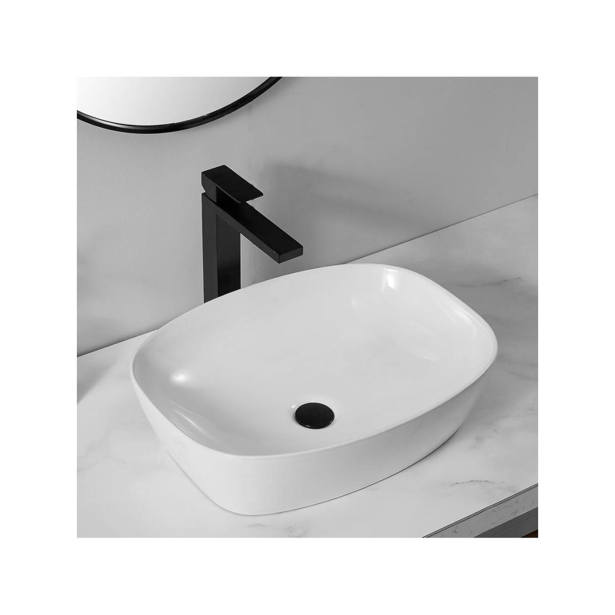 Das moderne Aufsatzwaschbecken Freja ist die perfekte Kombination aus minimalistischem Design und Funktionalität. Es besteht aus hochwertiger Sanitärkeramik und zeichnet sich durch Langlebigkeit, Kratzfestigkeit und einfache Reinigung aus. Das Waschbecken Freja ist nicht nur ästhetisch, sondern auch funktional. Es ist für die Montage auf einer Ablagefläche vorgesehen und bietet Komfort bei der Nutzung sowie eine optimale Raumnutzung. Der Standard-Abfluss ermöglicht eine einfache Installation mit den meisten verfügbaren Siphons und Armaturen.