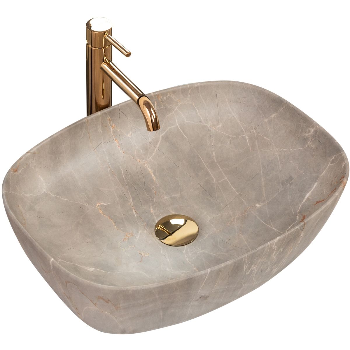 Rea Freja Waschbecken 51x39.5 cm rechteckig Aufsatzwaschbecken grauer Stein-braun/beige REA-U6647