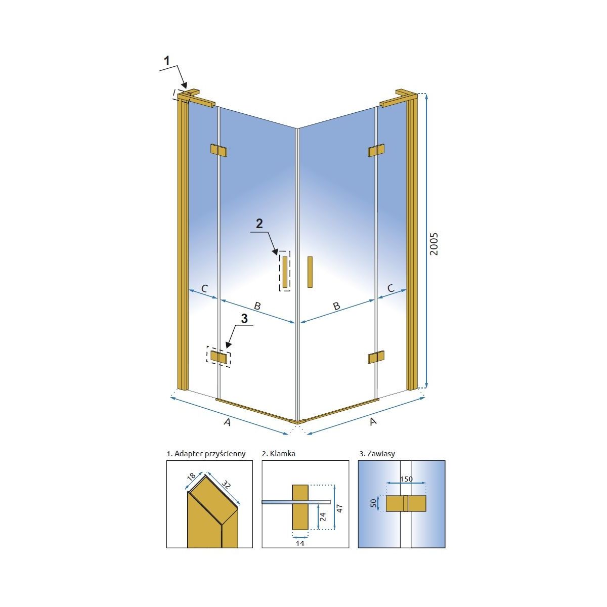 Rea Hugo Dusche 100x100 cm quadratisch gold gebürstet/durchsichtiges Glas REA-K6605