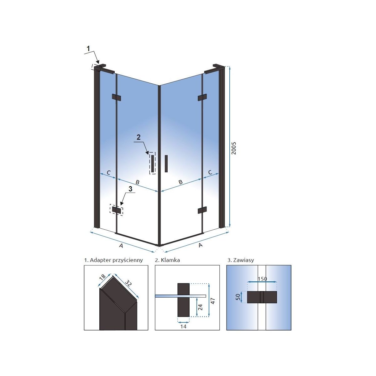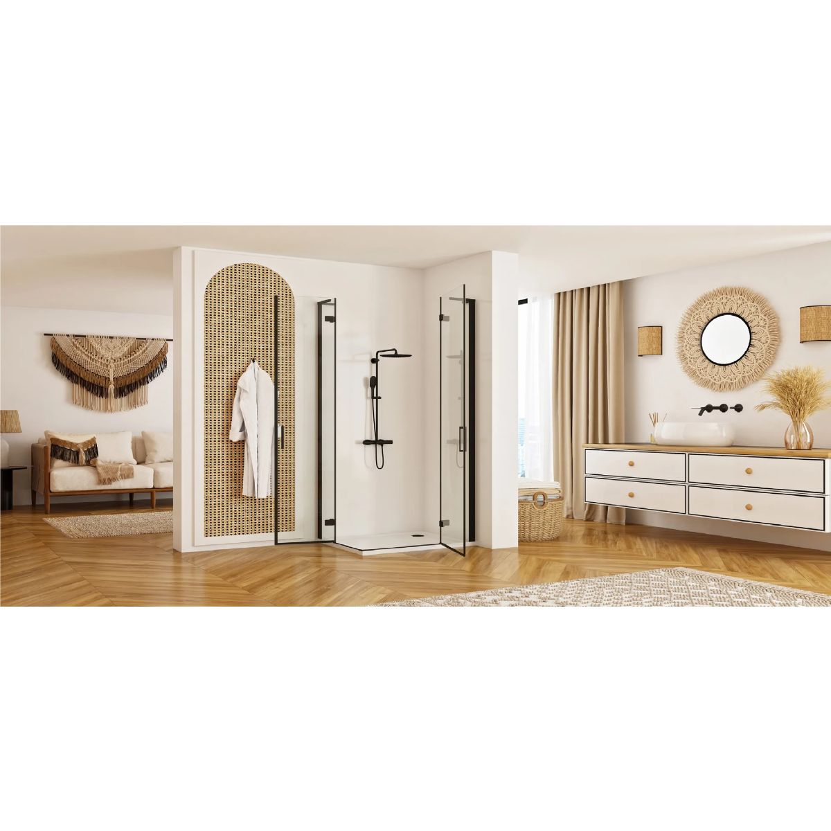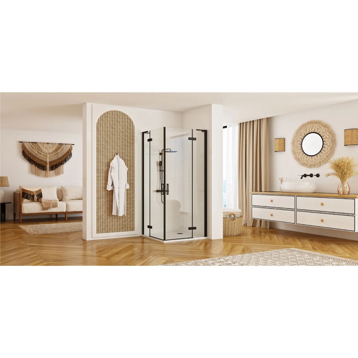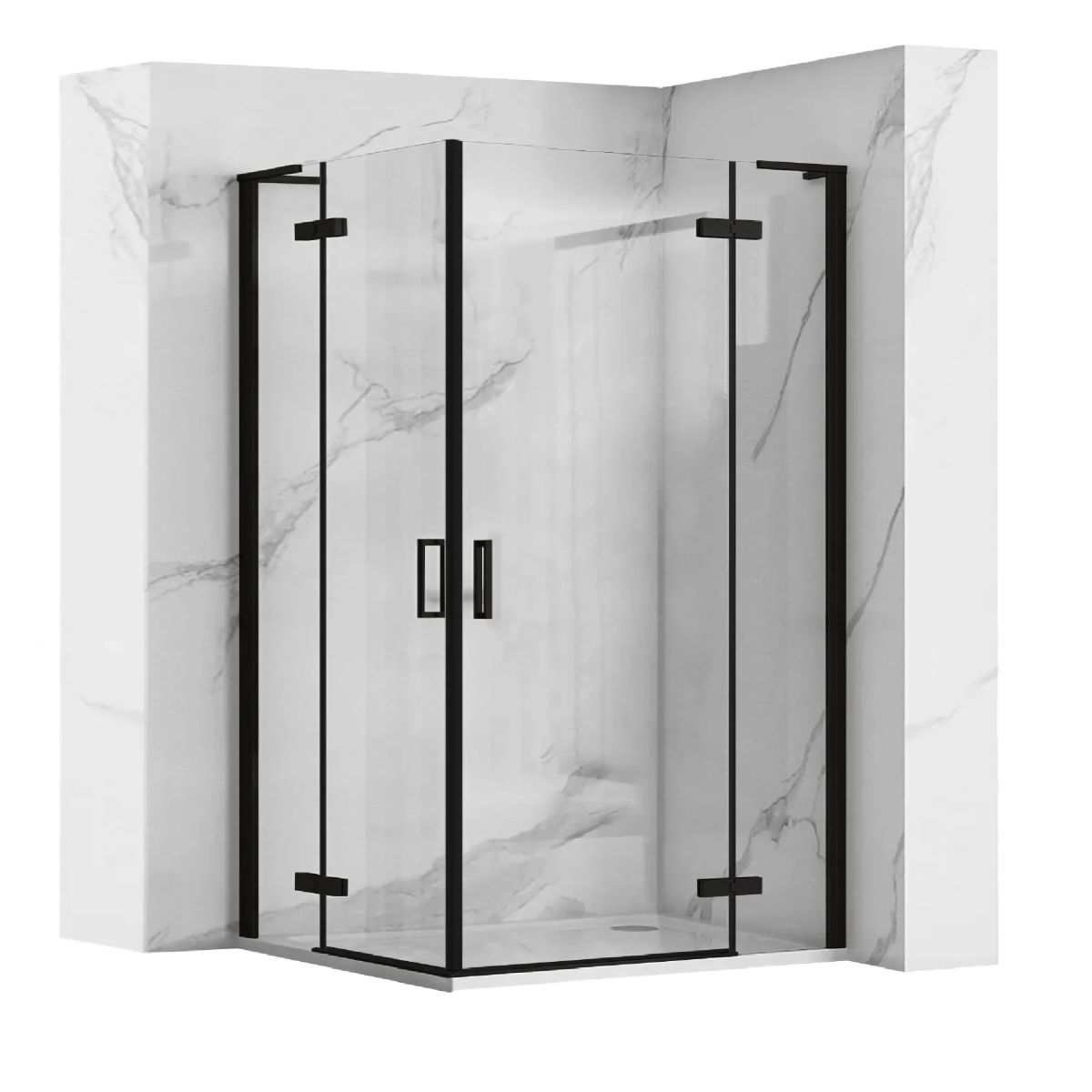 Rea Hugo Dusche 80x80 cm quadratisch schwarz seidenmatt/durchsichtiges Glas REA-K6600