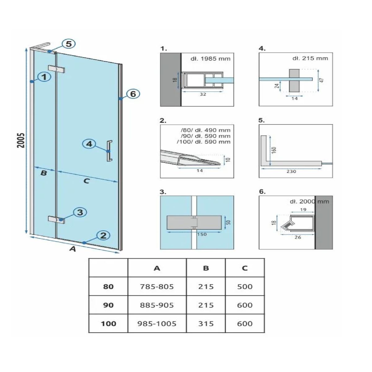 - Breite der Türscheibe B: 60 cm