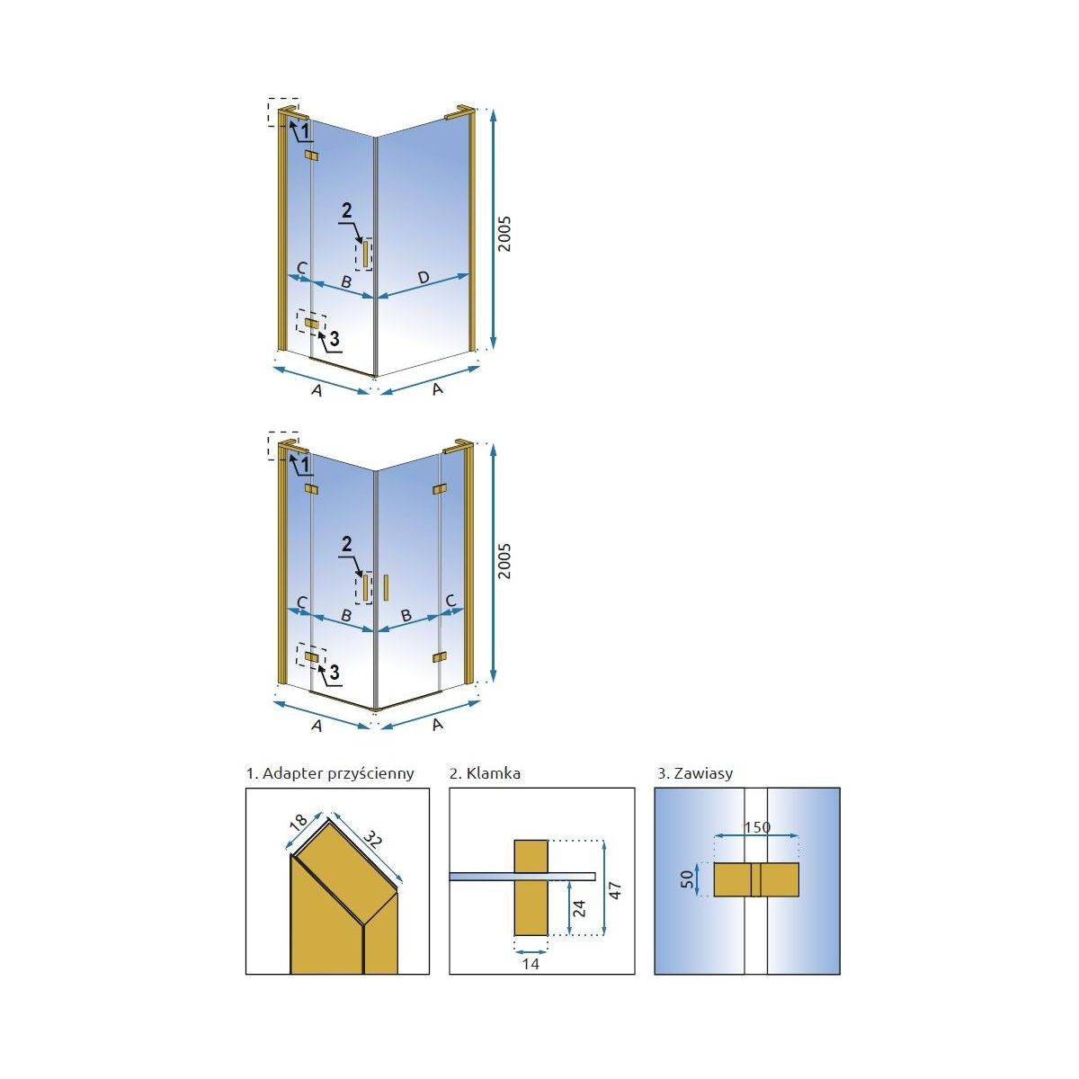 Rea Hugo Duschwand 80 cm gold gebürstet/durchsichtiges Glas REA-K6612