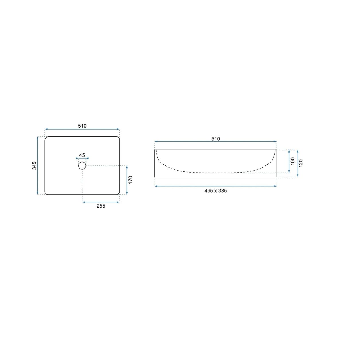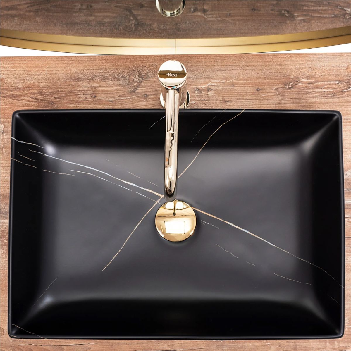 Rea Inga Waschbecken 51x34.5 cm rechteckig Aufsatzwaschbecken schwarz REA-U8006