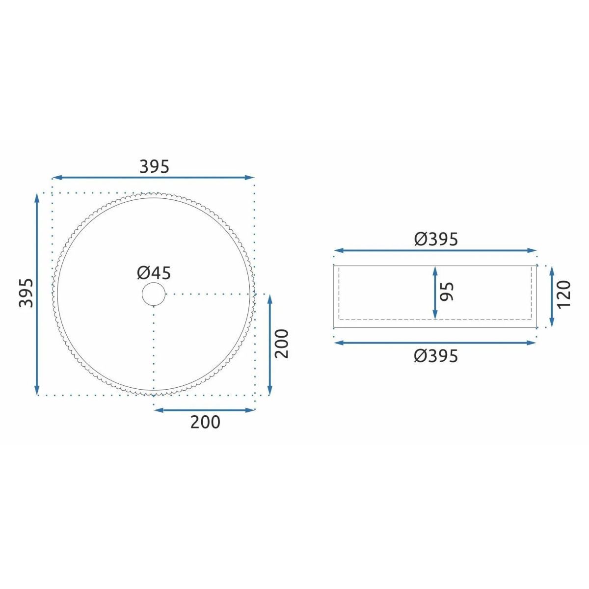 Rea Ingrid Waschbecken 39.5x39.5 cm rund Aufsatzwaschbecken REA-U0278