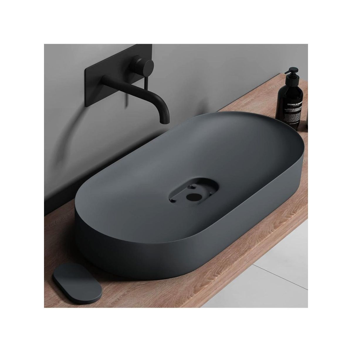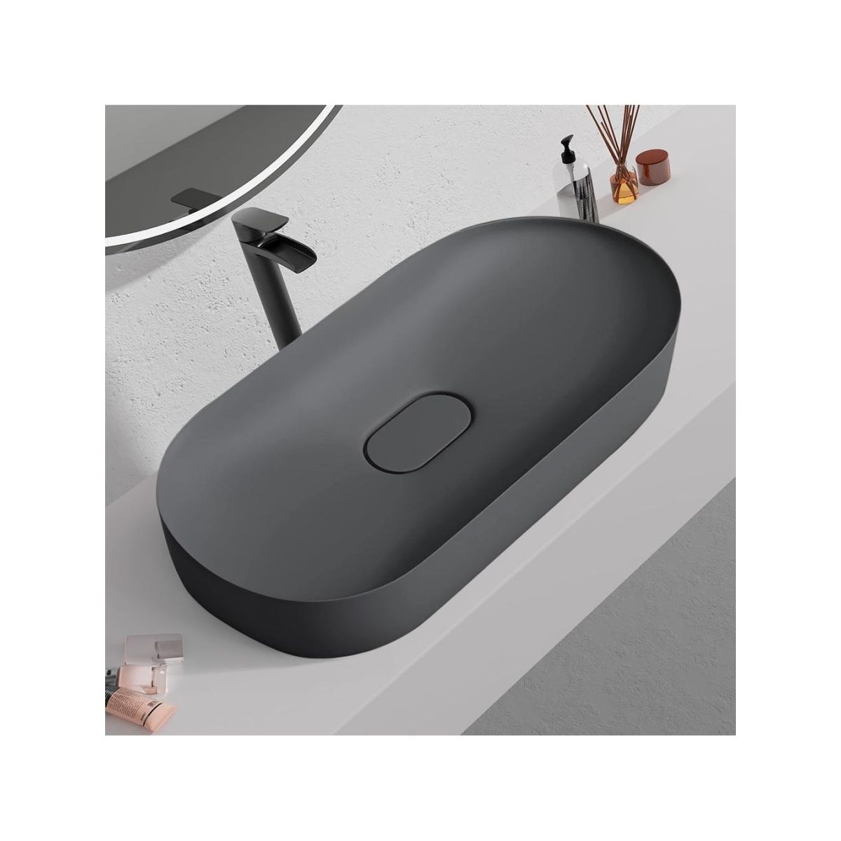 Rea Iris Waschbecken 70x35.5 cm oval Aufsatzwaschbecken grauer Stein REA-U4306