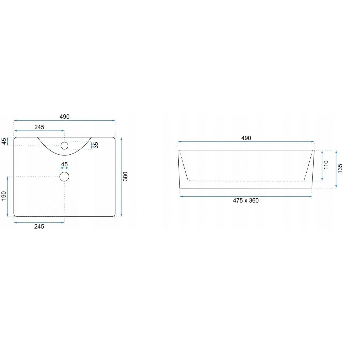 Rea Kelly Waschbecken 49x38 cm rechteckig Aufsatzwaschbecken REA-U5052