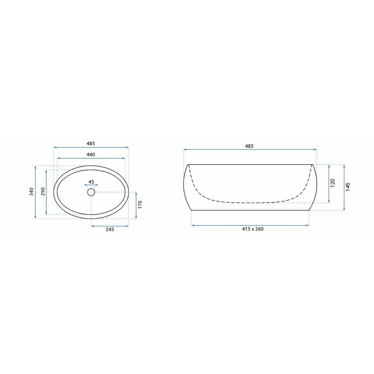 Rea Linda Waschbecken 48.5x34 cm oval Aufsatzwaschbecken grauer Stein REA-U2514