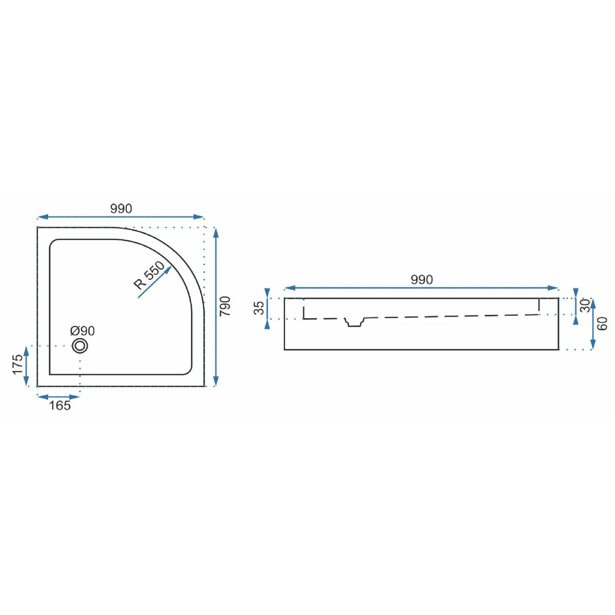 - halbrundes Duschbecken rechts